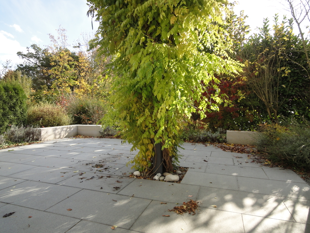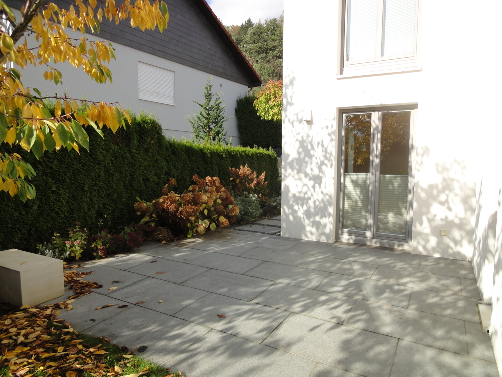 - Granitfliesen (60x90) auf der Terrasse