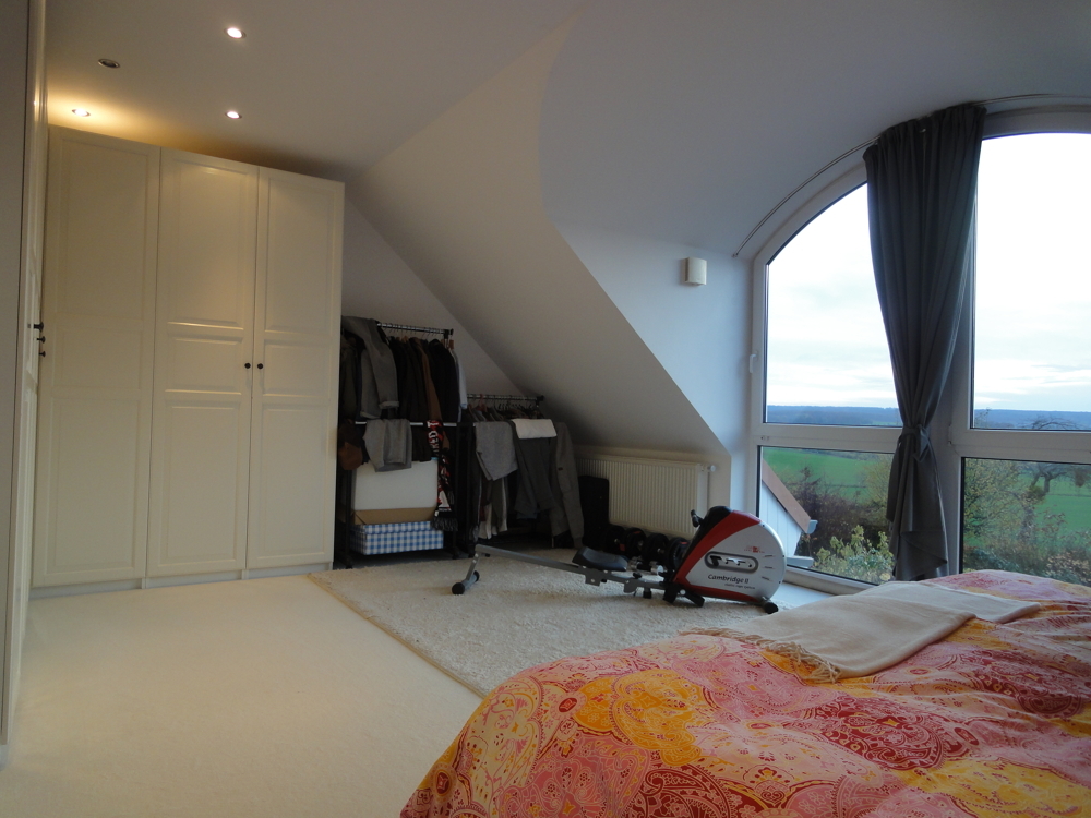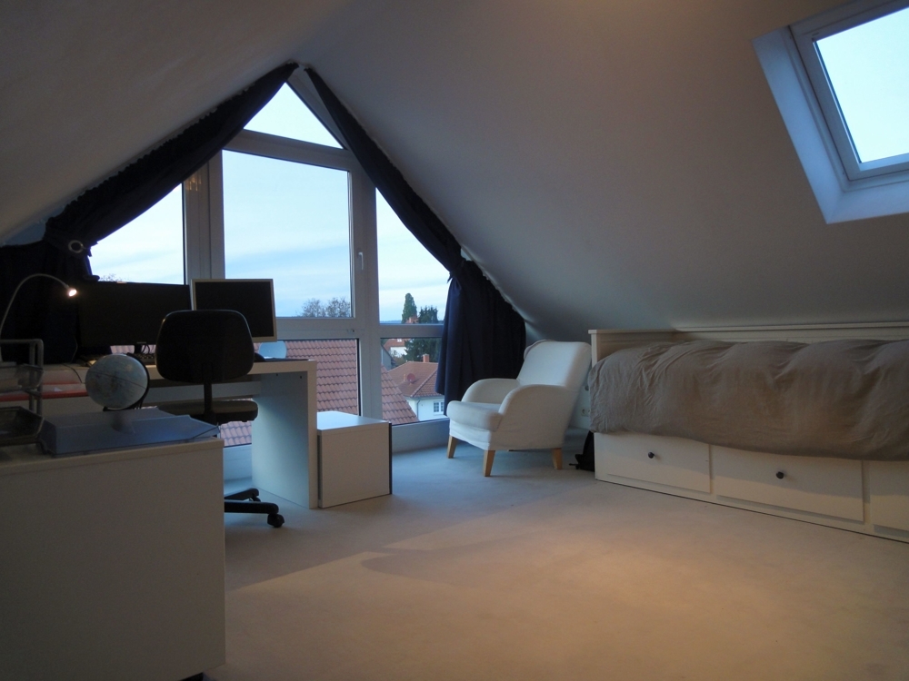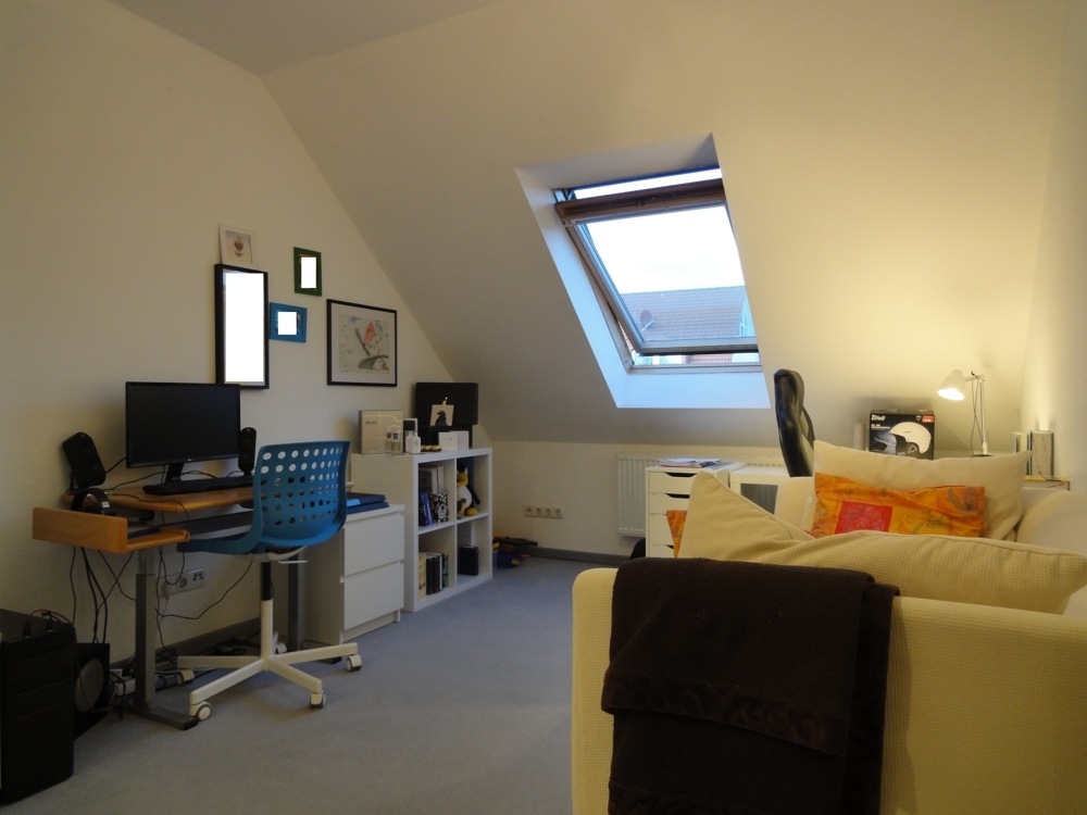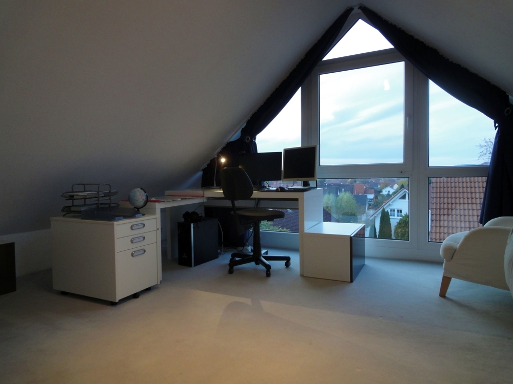 Im Dachgeschoß gibt es ein weiteres Zimmer mit großer Fensterfront, von hier haben Sie eine tolle Aussicht über Fischbeck. Dieses Zimmer ist ideal als Arbeits- oder Gästezimmer.