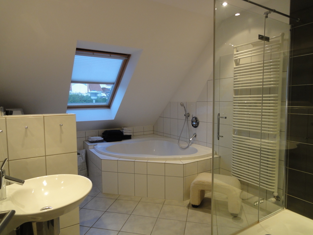 - Bad mit Wanne und 120cm x 120cm großer Dusche