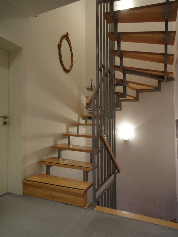 Über die offene Treppe gelagen Sie ins Obergeschoß, hier befindet sich das große Schlafzimmer, welches einen tollen Ausblick auf die Felder bietet. Ebenfalls im Obergeschoß ist ein Kinderzimmer und das große Badezimmer mit Wanne und 120cm x 120cm großer Dusche.