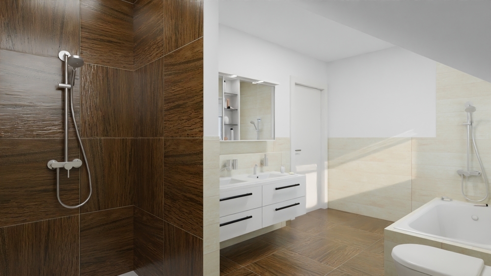 - modernes Bad mit Wanne und Dusche im OG